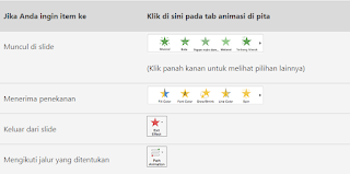 Buka slide pilih animasi yang akan digunakan, pilih salah satu animasi berikut: